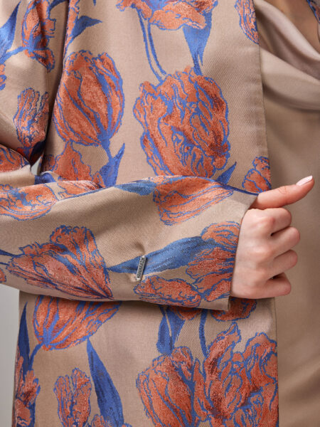 Blue Floral Jacket Abaya, with a unique jacquard fabric which are designed as a feminine