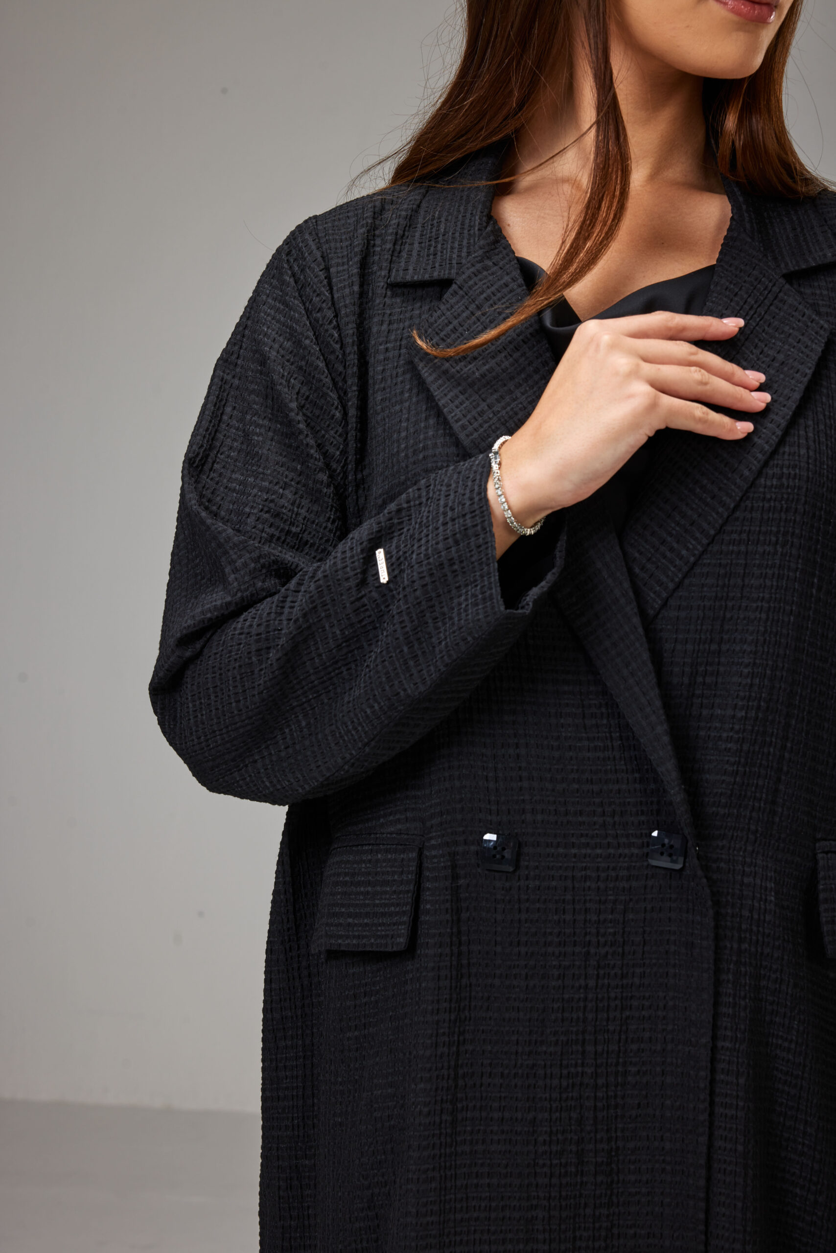 Its refined black tone offers a timeless balance between tailored elegance and modern sophistication.